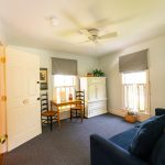 Located on the ground floor and in the left wing of the Inn, the two-room Rockport Suite offers a Queen bed, en suite bath, and attached sitting room with a sofa that opens to a queen bed. With an exceptionally attractive blue and white color scheme, each room has a flatscreen TV, and the sitting room additionally features a table and chairs. A favorite for prospective college students and their parent(s), the Rockport comfortably accommodates the extra guest in your traveling party.